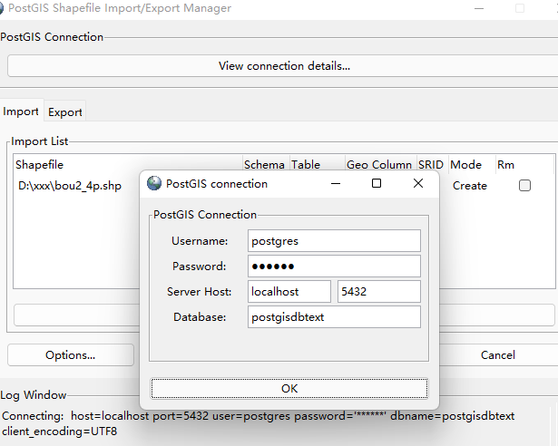 第二步:先用postgis与postgresql建立连接