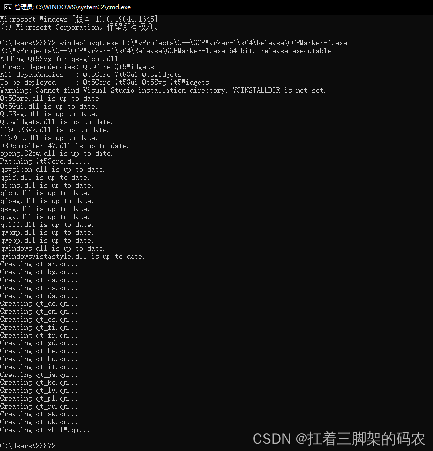 或者也可以将windepolyqt.exe所在路径添加到环境变量中,下次打开命令行就可以直接运行上述命令了。