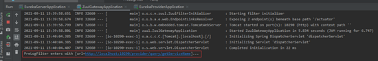 重新启动Zuul网关服务之后再次进行请求,可以看到控制台打印如下输出: