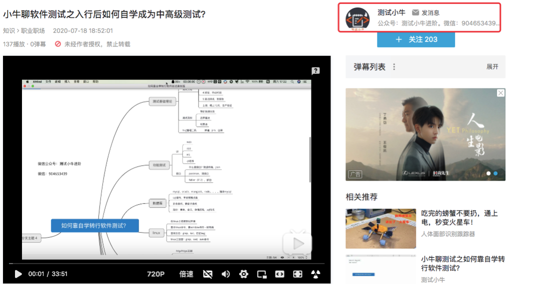 最后,继续推出B站视频系列,聊聊入行软件测试后如何进一步自学进阶!