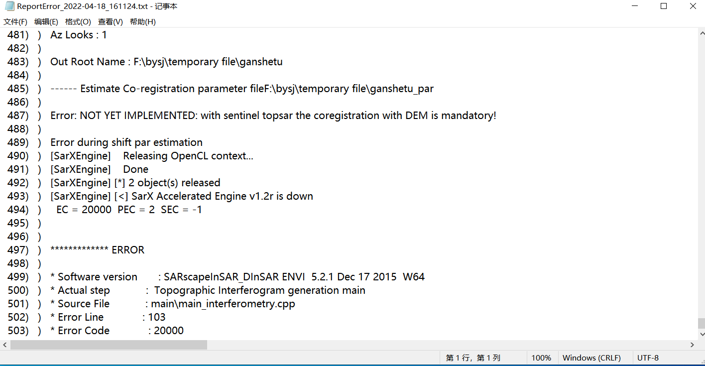 最近在做InSAR反演DEM,在干涉图生成时,出现了错误提示,20000.