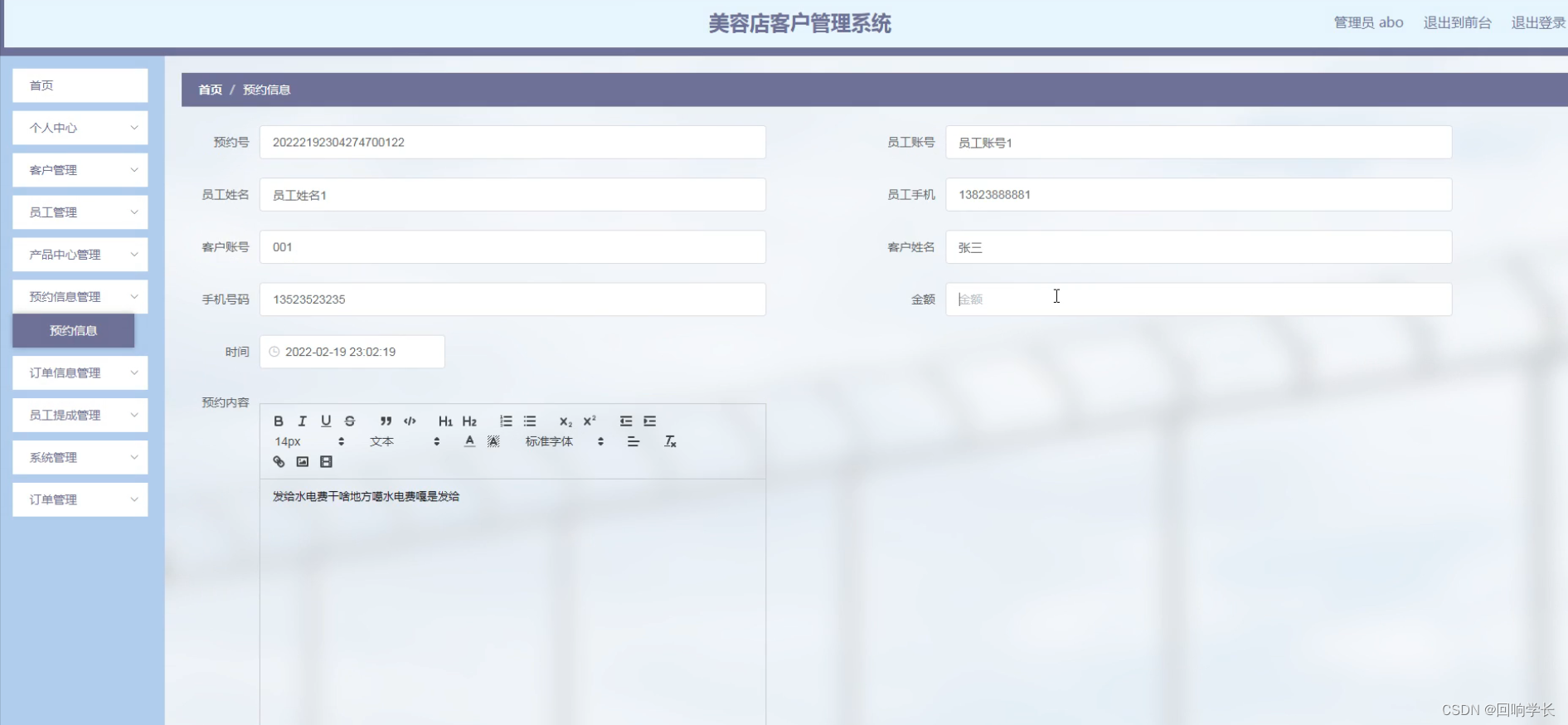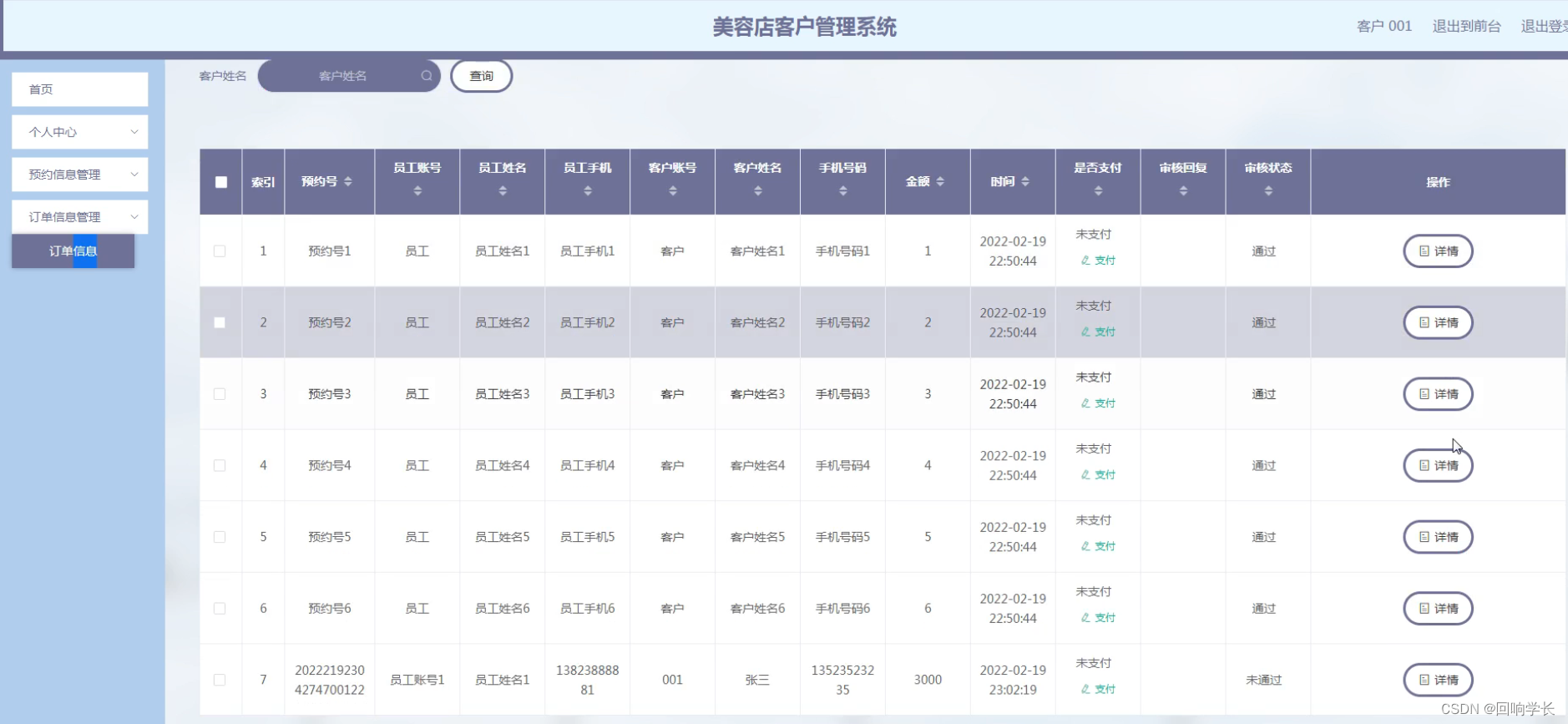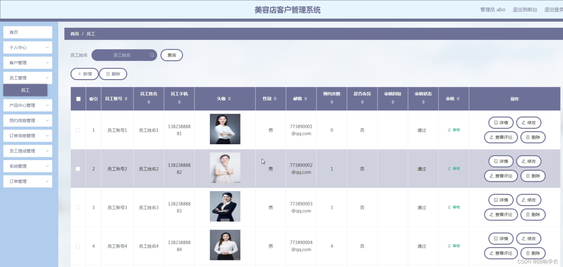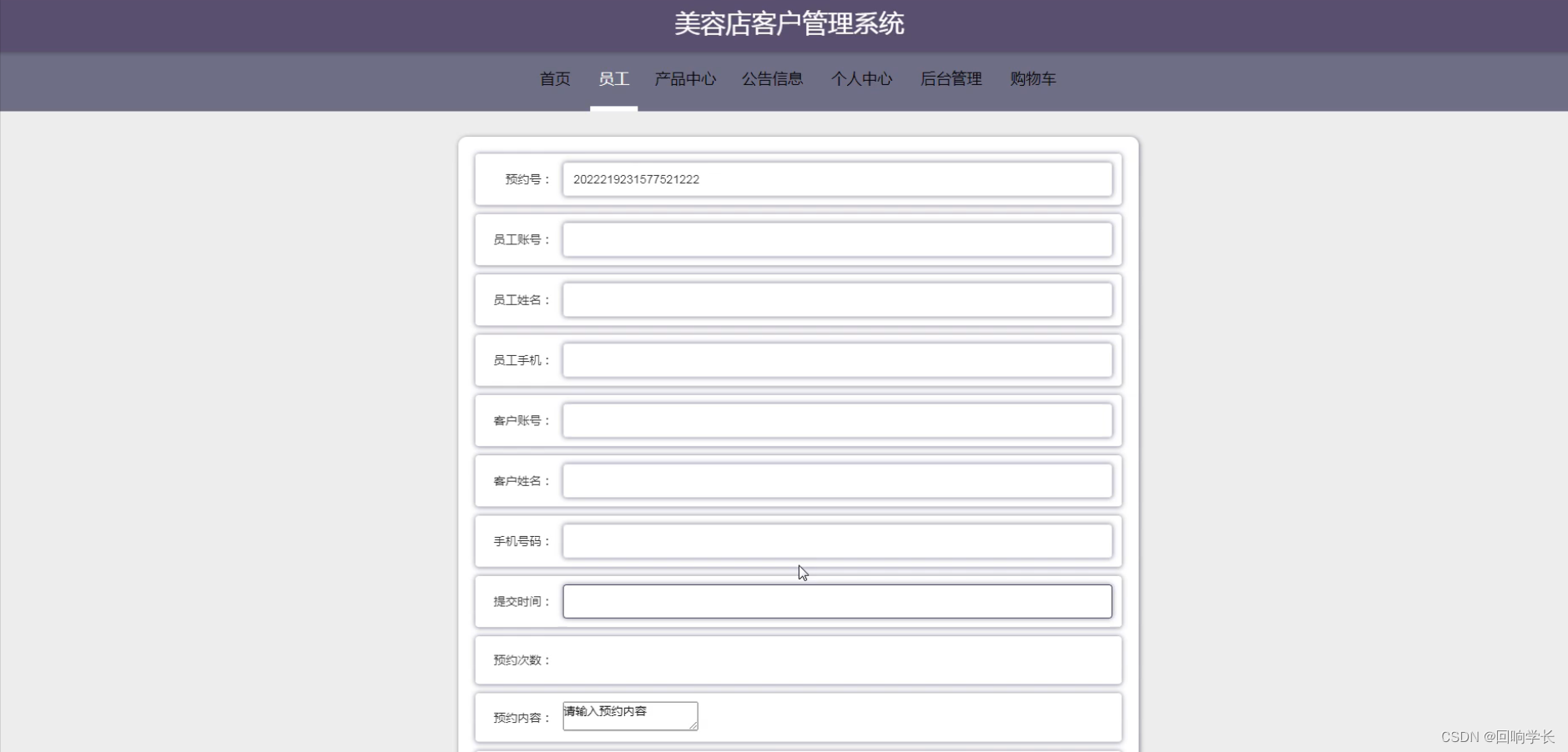 Springboot毕设项目美容店客户管理系统7go98(java+VUE+Mybatis+Maven+Mysql)