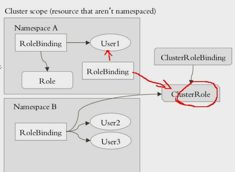Error from server (Forbidden): pods "myapp-798dc9b584-kwngn" is forbidden: User "lemon" cannot delete resource "pods" in API group "" in the namespace "default"可见,我们把用户lemon绑定到clusterrole后,这个用户对所有的名称空间都有权限了。因为cluserrolebinding是针对集群的,而rolebinding是只针对namespace的。
