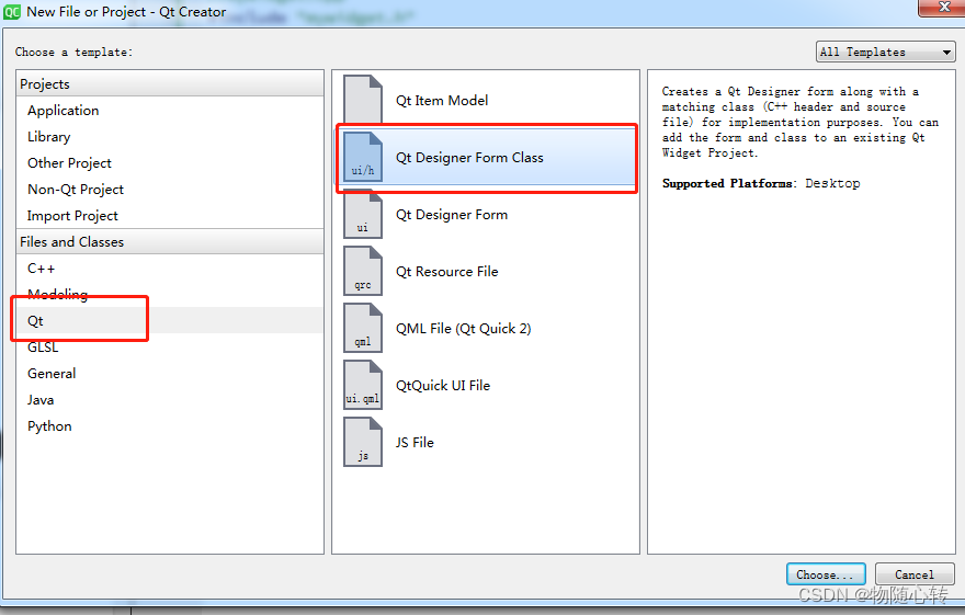 1、首先,新建一个项目。然后添加Qt设计师界面类。如下所示: