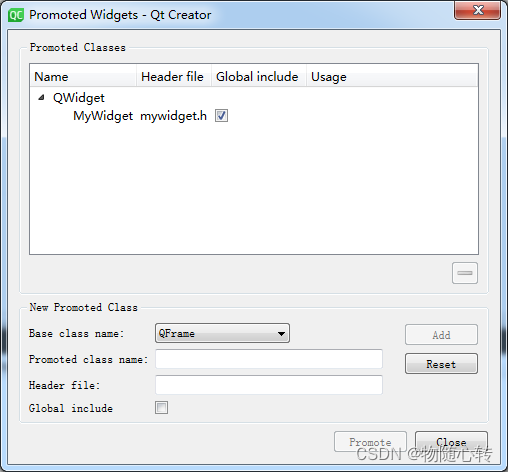 6 、然后选中右击它有一个提升为如下:输入类名,注意不要填错了。然后点击添加即可,最后点击提升就完成了你自定义控件的使用了。