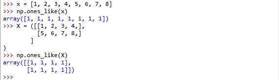 -使用ones_like创建形状相同的数组 #也是创建全是1的数组