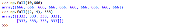 np.full(shape,full_value,dtype = None,order =‘C’) #full_value填充的数字,使得数组全为这个数