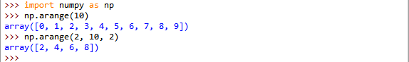 arange([start,]stop[,step,],dtype = None) #与Python中range用法相同