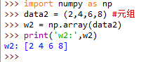 尝试使用numpy中的array函数,在IDLE (Python 3.7 32-bit)中举例: