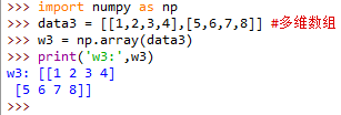 - 使用Python的list和嵌套list创建一维的array和二维的array
