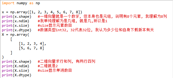 - dtype:array中元素的数据类型 #看元素的数据类型,只能有一种类型