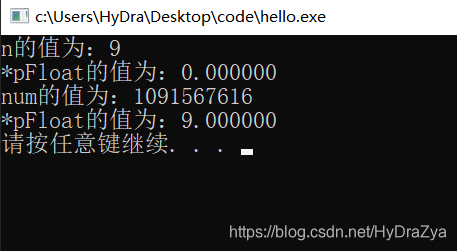 printf("*pFloat的值为:%f\n",*pFloat);