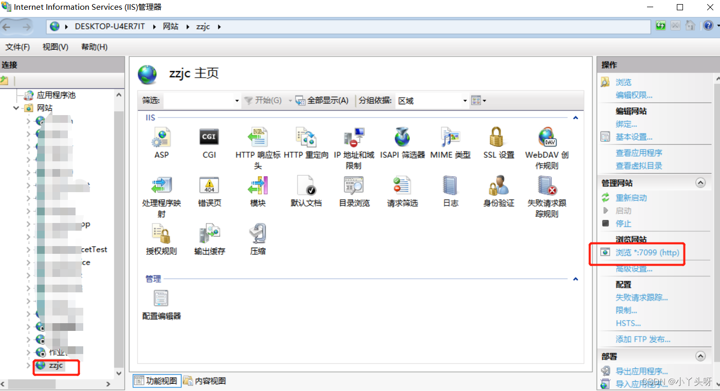 5.7 重启完成后,打开网站。找到部署的网页,点击浏览