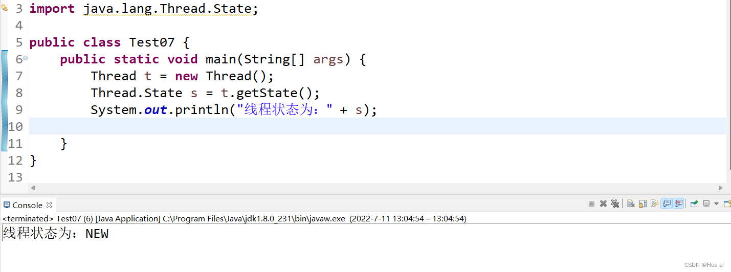 NEW(新建状态):创建后,启动前。线程就处于这个状态。
