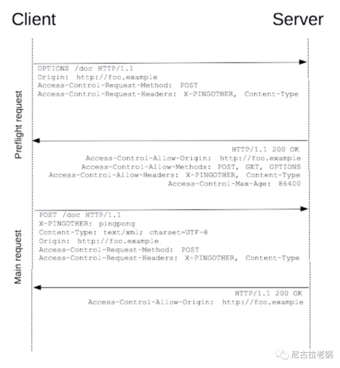 不满足简单请求的条件时,会触发预检请求:浏览器会先发一个option请求到服务器,确认是否可以发送实际请求,确认允许后再发送实际请求。