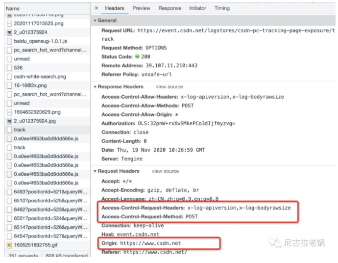 这三个字段是自动加的,在option请求中就可以看到,如图: