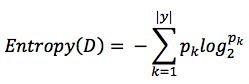 信息熵是度量集合中样本不纯度的一种指标,假设当前集合为D,其中样本类别数为|y|,第k类样本所占的比例为p_k,那么集合D的信息熵Entropy则定义为: