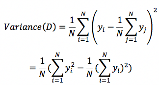 Variance方差也是衡量集合中样本不纯度的一种指标,因为只是针对连续值,因此只能用于处理回归决策树。假设当前集合为D,样本数量为N,每个样本的值为y_i,那么集合D的Variance方差则定义为:最后转化为平方和以及和的平方