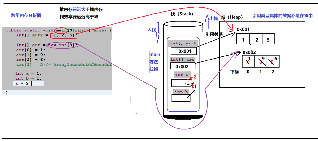1、数组的下标范围是[0,arr.length-1],使用数组的时候,超过下标范围会报错