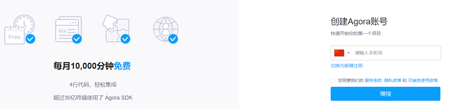 1、注册声网账号,点击前往注册 Agora.io Signup
