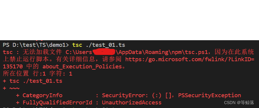 然后再执行 get-ExecutionPolicy 会返回 RemoteSigned 。然后再去执行ts代码就不会报错了