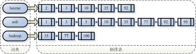 倒排索引结构是根据内容(词语)找文档,如下图: