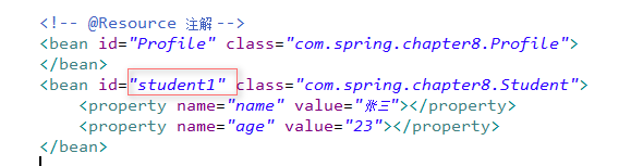 @Resource() //未指定name,默认取将要注入属性的字段名,如下Student是类类型,student是属性名也就是字段名