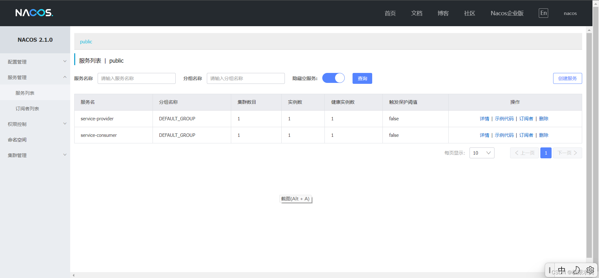 spring.cloud.nacos.discovery.server-addr=127.0.0.1:8850上面2个消费者和2个提供者建议分别提供相同的服务,方便我们后面的调试过程中了解服务数据的存储结构和运行机制。
