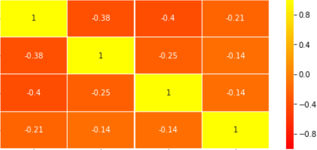 sns.heatmap(cor,linewidths = 0.05, ax=ax2, mask=mask, annot=True, annot_kws=font, vmax=1.0, vmin=-1.0, cmap='YlOrRd', center=0)