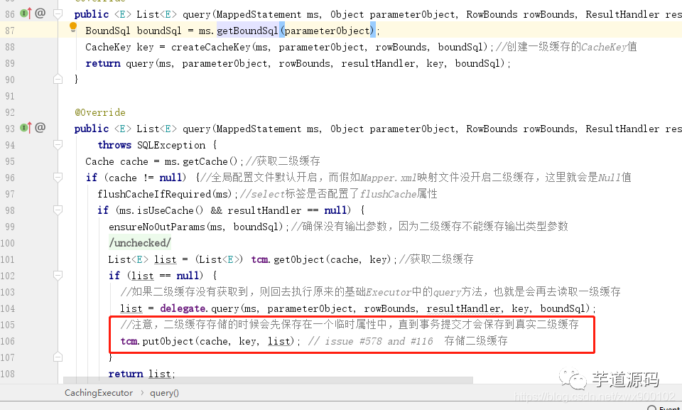 接下来我们看看CachingExecutor中的query方法:上面方法大致经过如下流程: