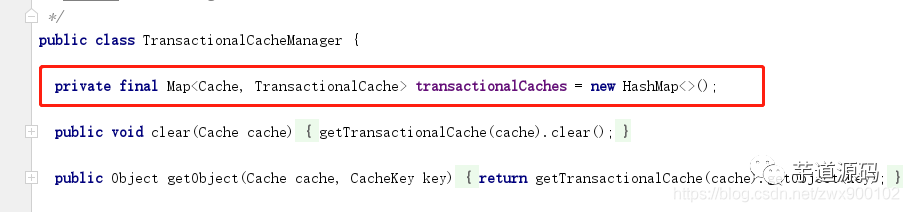 TransactionalCacheManager内部非常简单,也是维护了一个HashMap来存储缓存。HashMap中的value是一个TransactionalCache对象,继承了Cache。