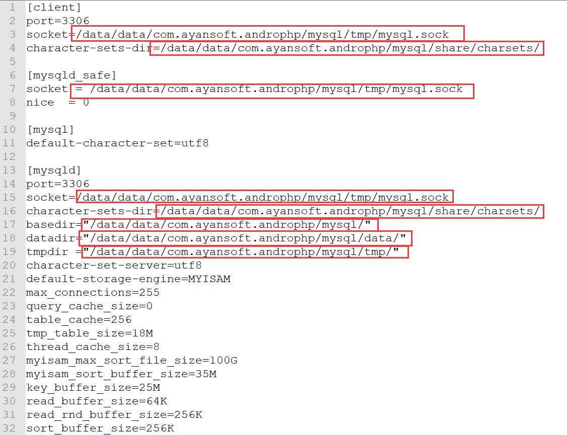 socket=/data/data/MySQL/tmp/MySQL.sock