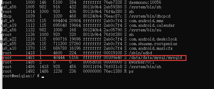 /data/data/mysql/mysqld --defaults-file=/data/data/mysql/my.cnf --user=root &