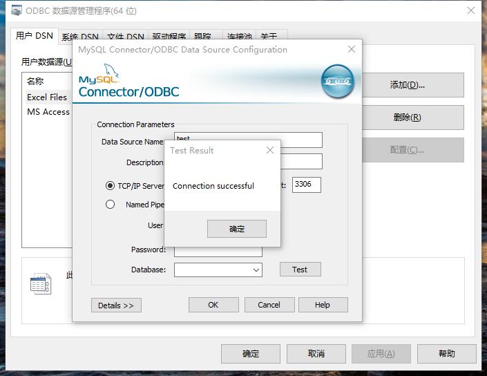 点击test,出现Connection successful