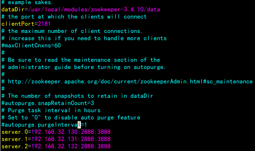 然后进入/usr/local/modules/zookeeper-3.4.10/conf目录