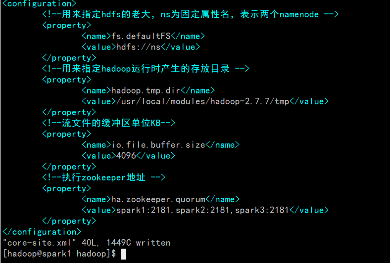 <value>qjournal://spark1:8485;spark2:8485;spark3:8485/ns</value>