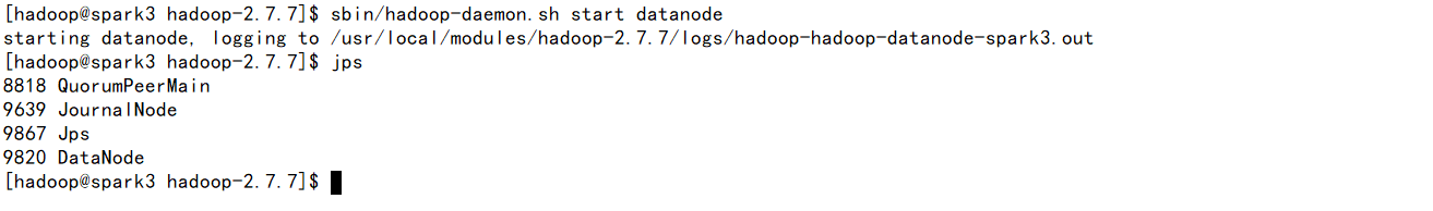 scp -r hadoop-2.7.7/ hadoop@spark3:/usr/local/modules/