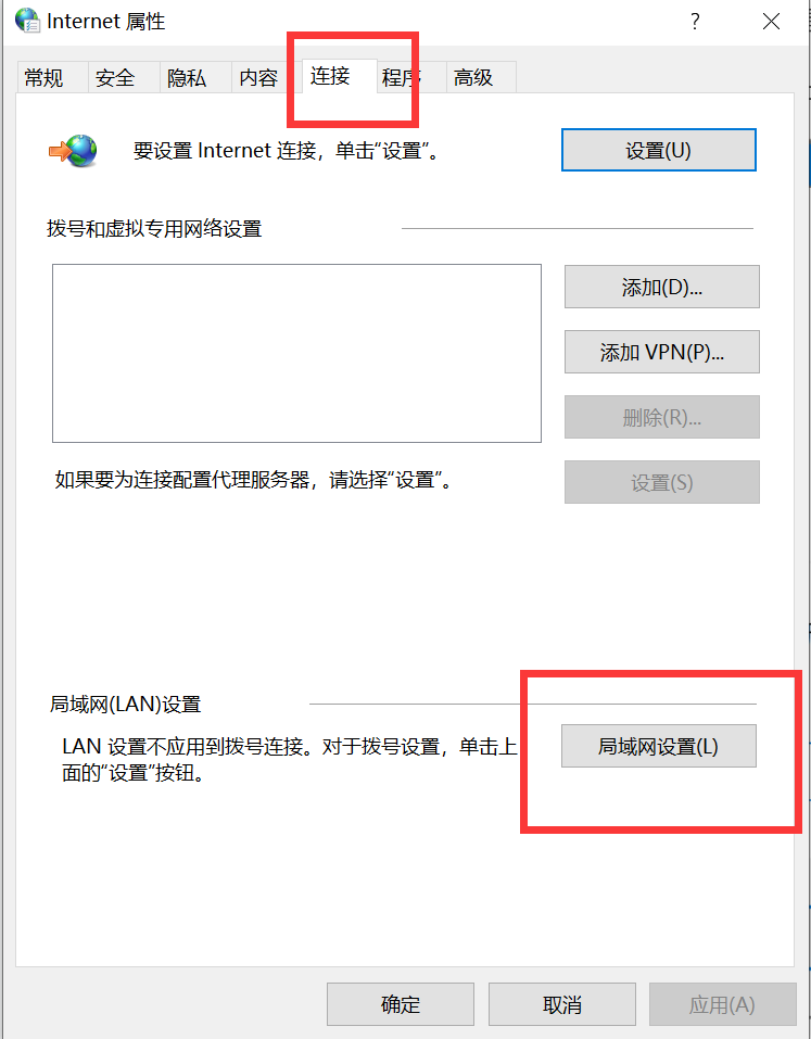 2、点击连接,点击局域网设置
