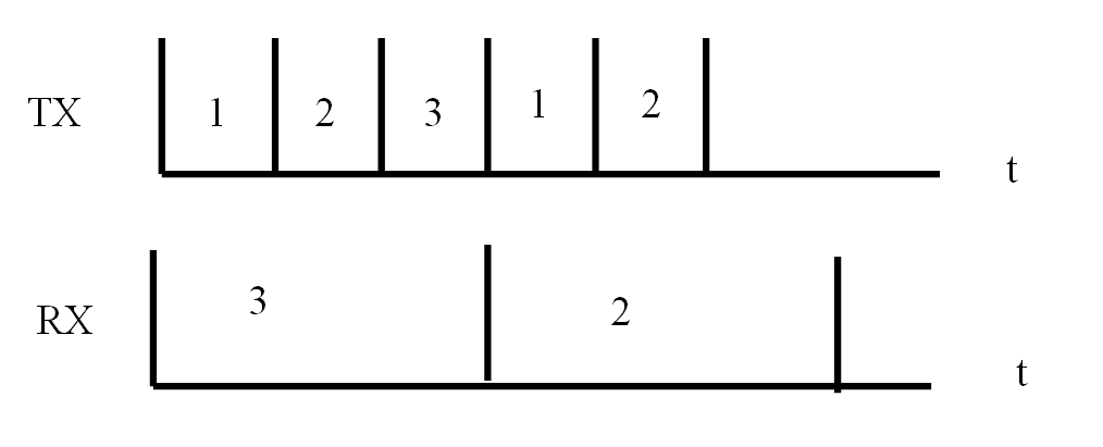 跳频需要注意的一点是,接收端在某个频点接收保持时间需要大于发射端每个频点都发送一次数据的时间如下图所示1,2,3分别代表的是工作频点1,2,3