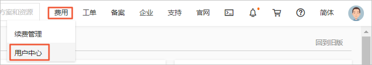- 在ECS管理控制台顶部菜单栏处,选择费用 > 用户中心。