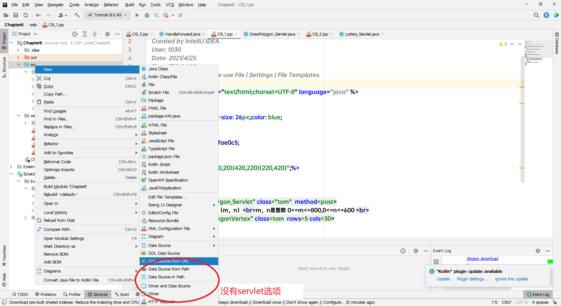 在学习jsp过程中,使用idea过程中发现没有servlet的选项,查阅资料后解决了问题,具体方法如下(版本2021.1):