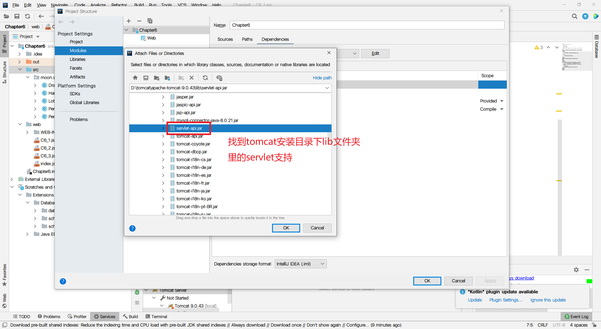 3.进入tomcat安装目录的lib ,找到servlet包并导入