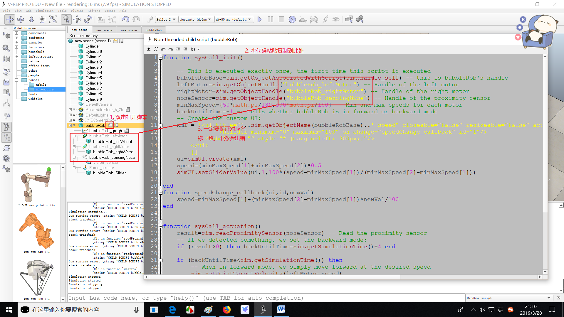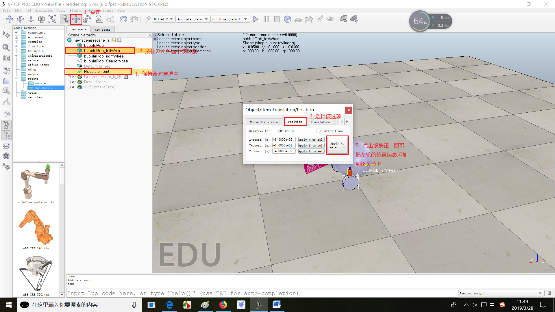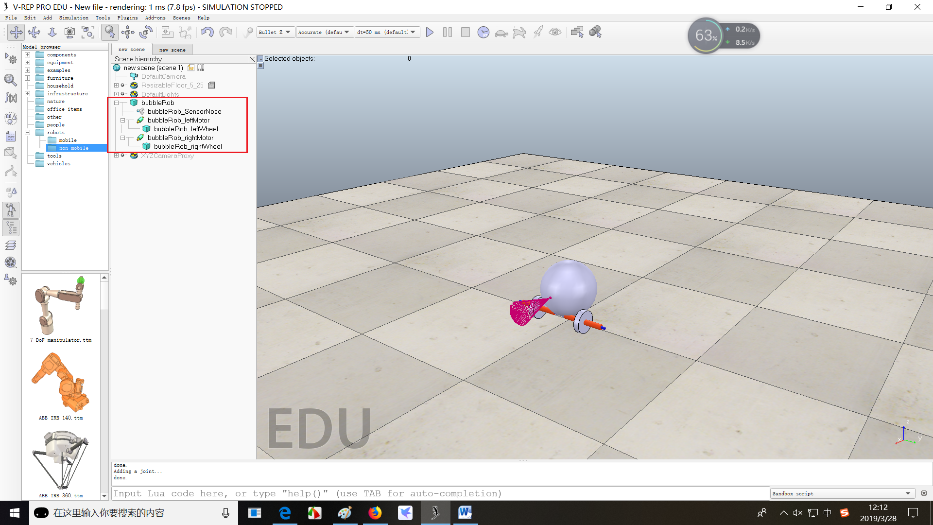 (4)将两个轮子与两个电机联系起来,并添加到bubbleRob下