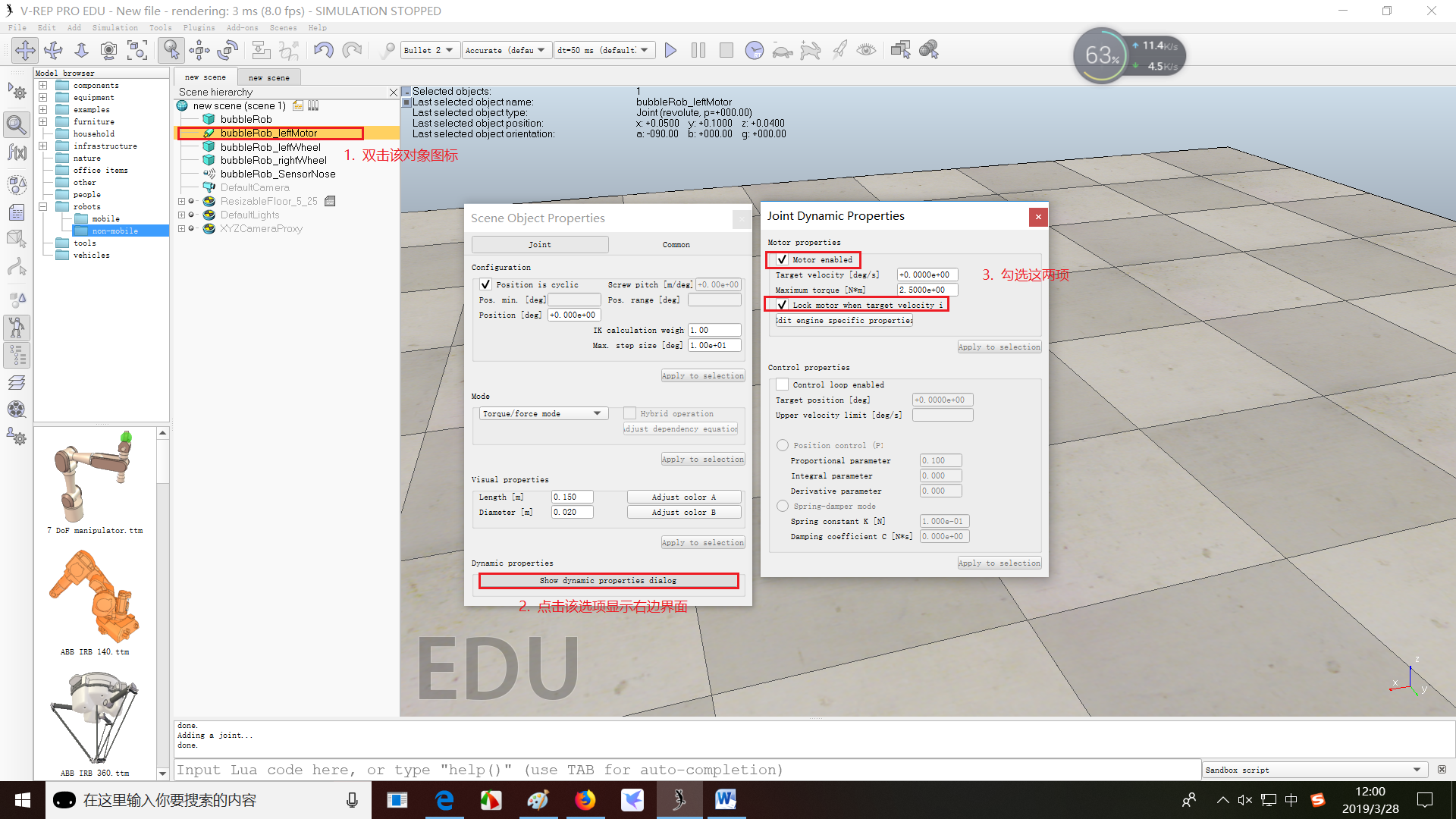 4. 添加关节(为bubbleRob添加rightMotor和leftMotor)