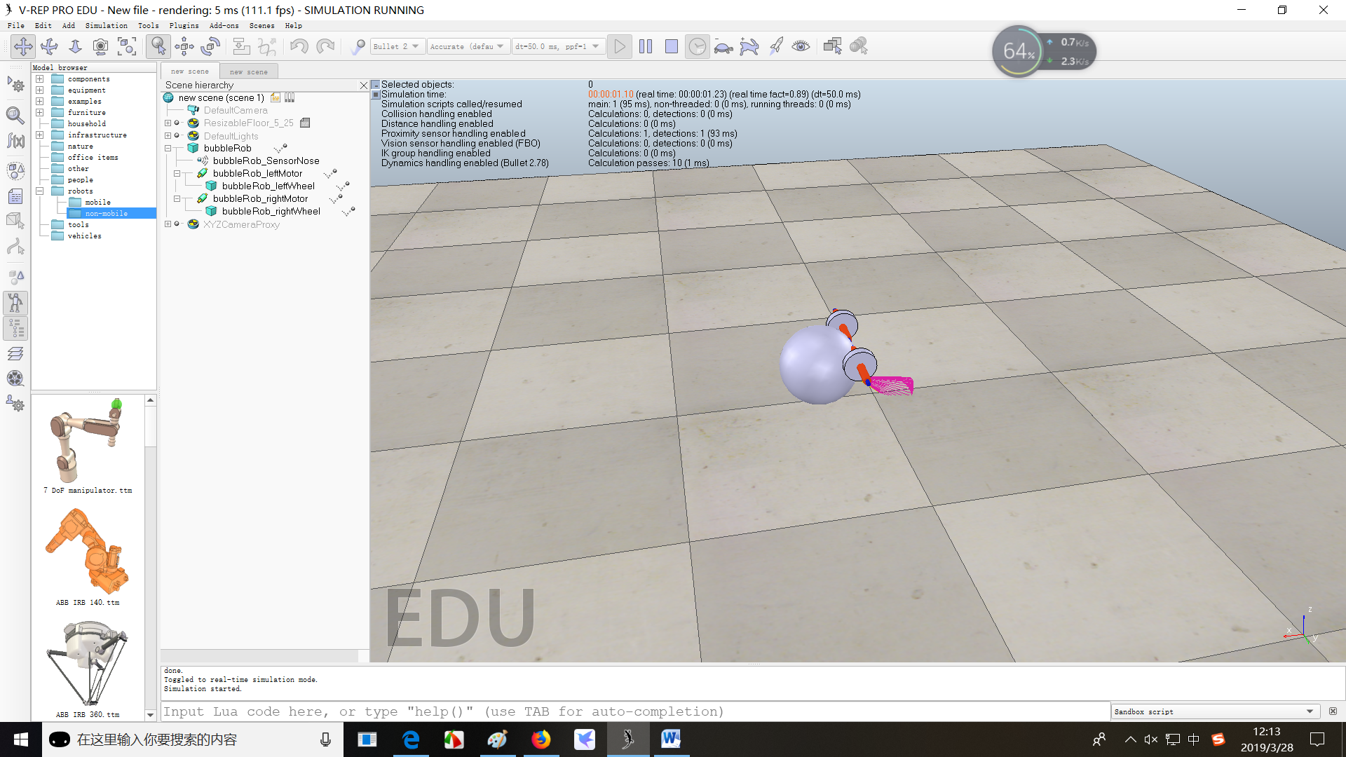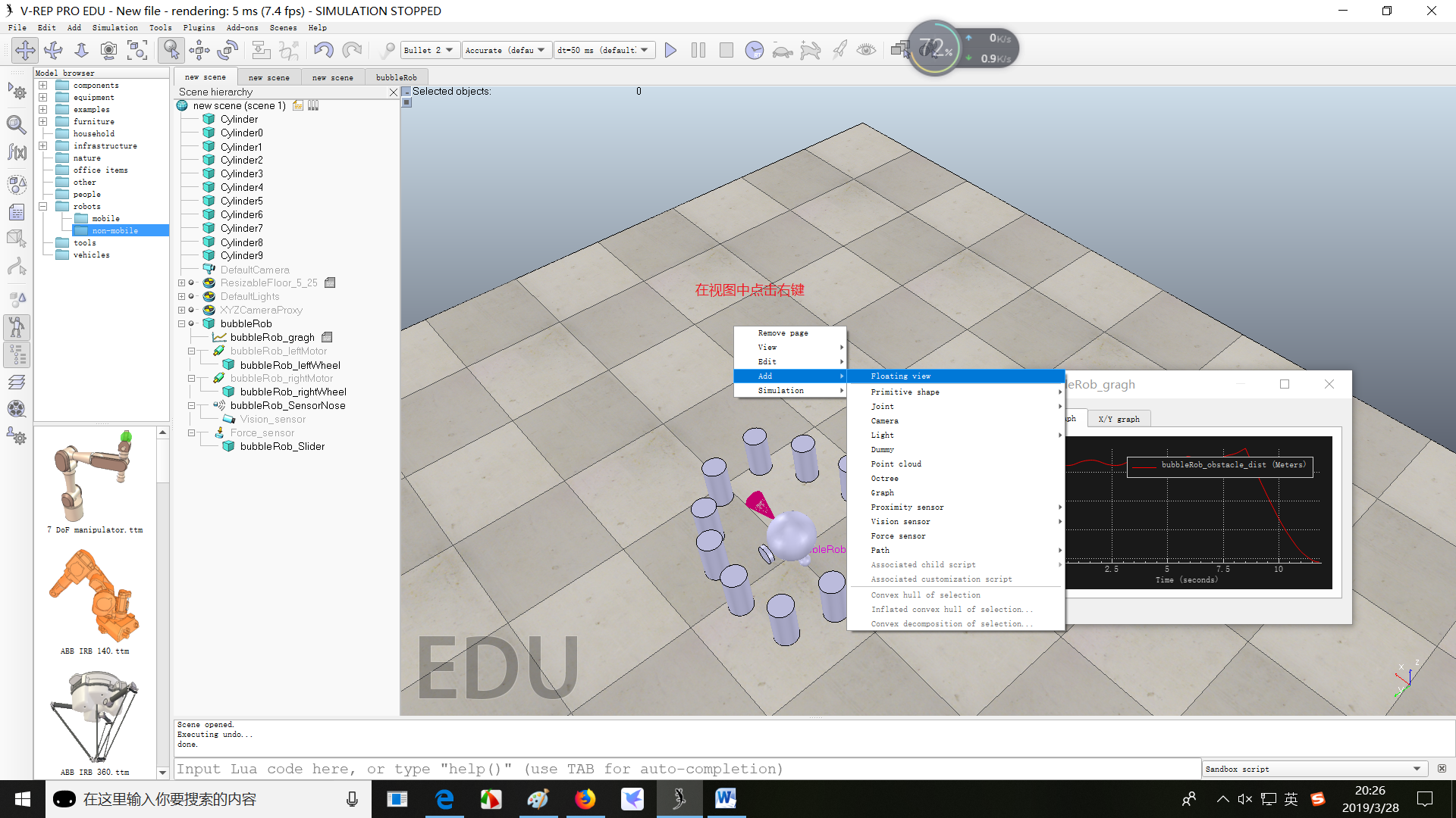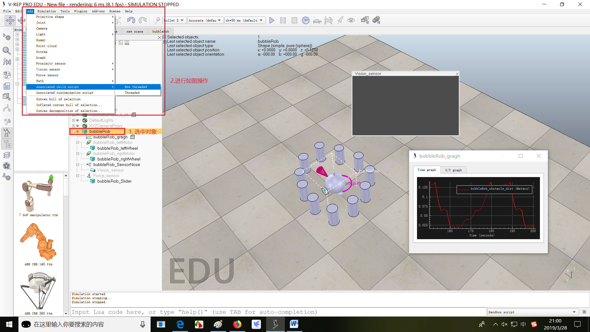 该教程参考V-REP官方示例教程Tutorials–BubbleRob tutorial。