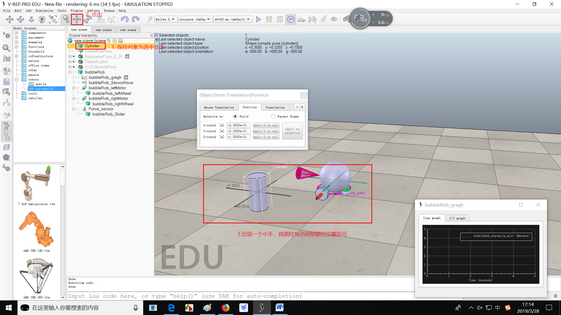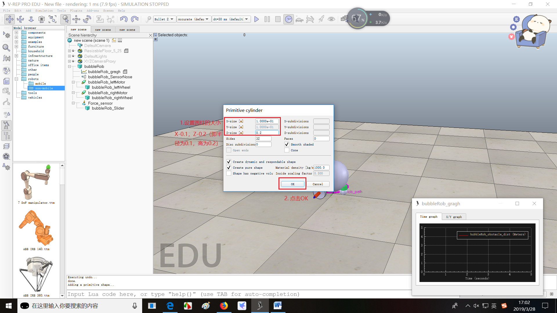 (2)重命名为bubbleRob_graph,并将其与bubbleRob联系起来,设置绝对坐标为(0,0,0.005)