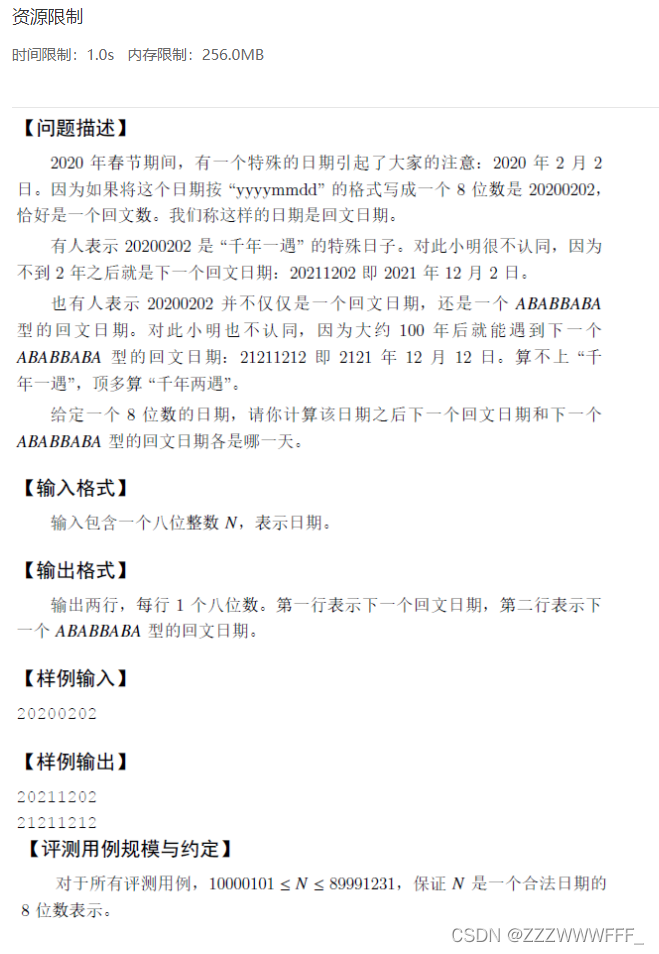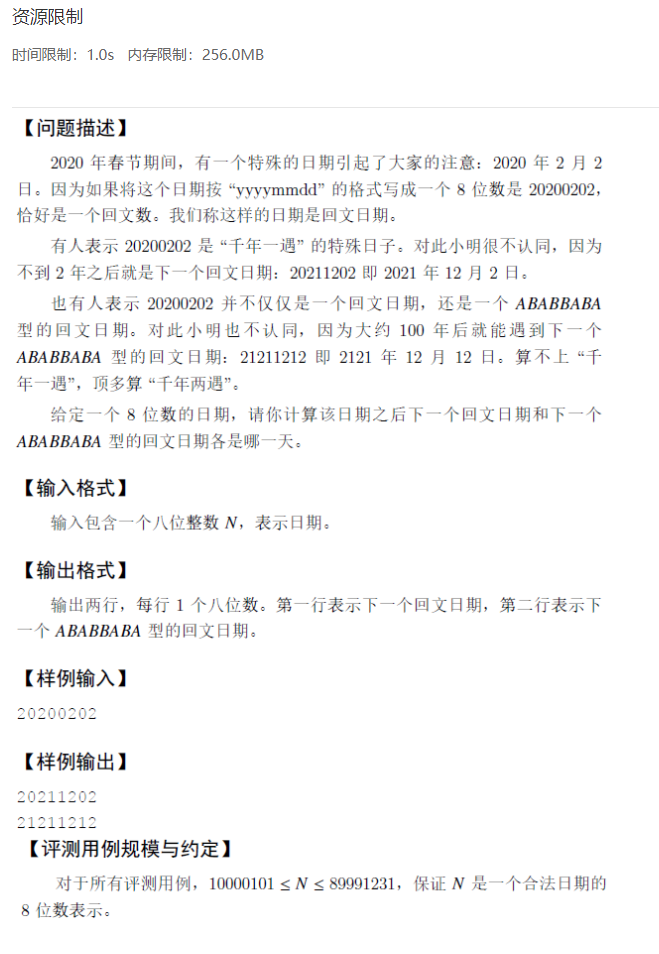 需要给出输入日期的 下一个回文日期 和 下一个 ABABBABA 型的日期 。