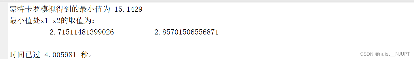 disp(strcat('蒙特卡罗模拟得到的最小值为',num2str(fmin)))