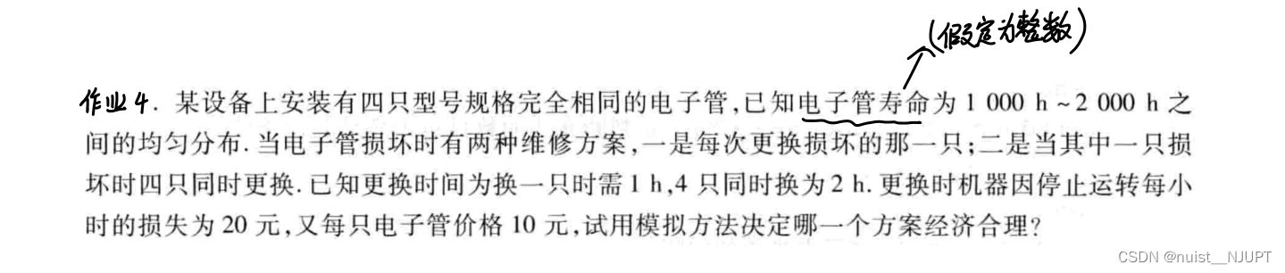我们看一下这个应用题,第一眼看题的时候觉得好搞笑,更换4只成本高而且耗时,而且没坏就换真浪费,直接哪个坏了换哪个不就好了,其实仔细看题会发现,到达寿命后,电子管可能随时坏,如果直接换掉4个,反而可能节约时间。