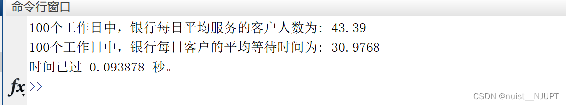 disp(['客户的平均等待时间为: ',num2str(t)])